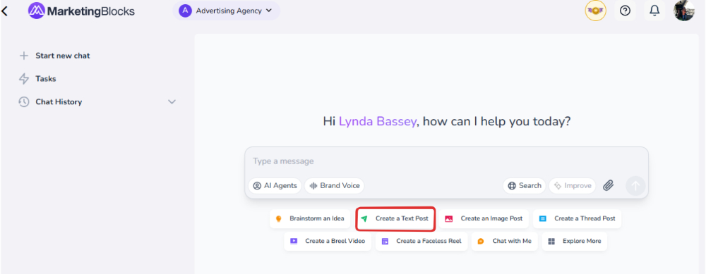 Step 1: From your dashboard, click on Chat with AI. It will take you to a page.