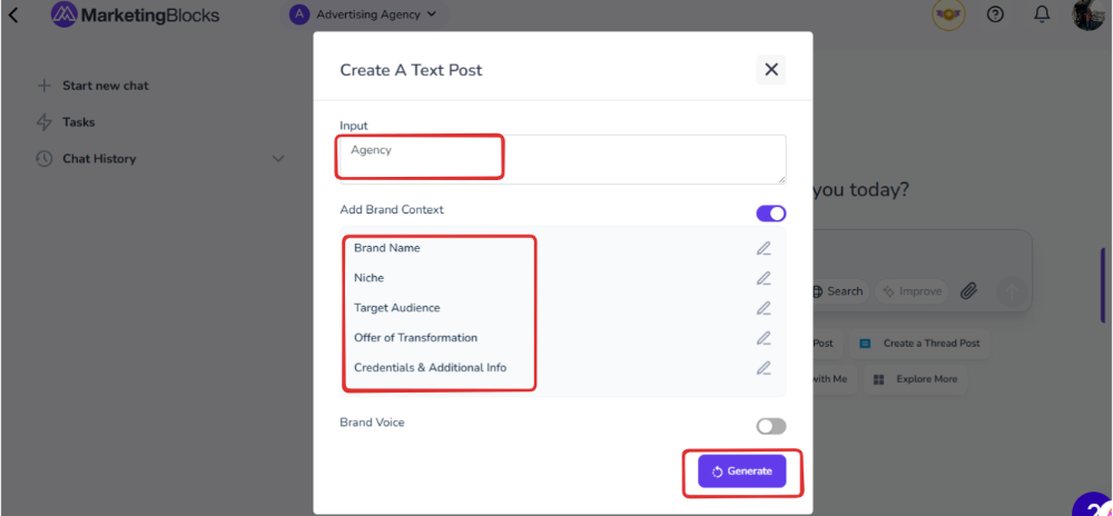 If you need further assistance, kindly use the chat widget at the bottom-right corner of this page or email our support desk (support@marketingblocks.ai) for prompt service.