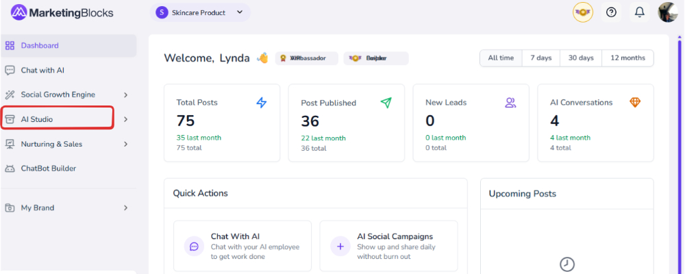 In your MarketingBlocks dashboard, navigate to the "Integrations" tab. This tab lists all the possible integrations with your AI Bot.